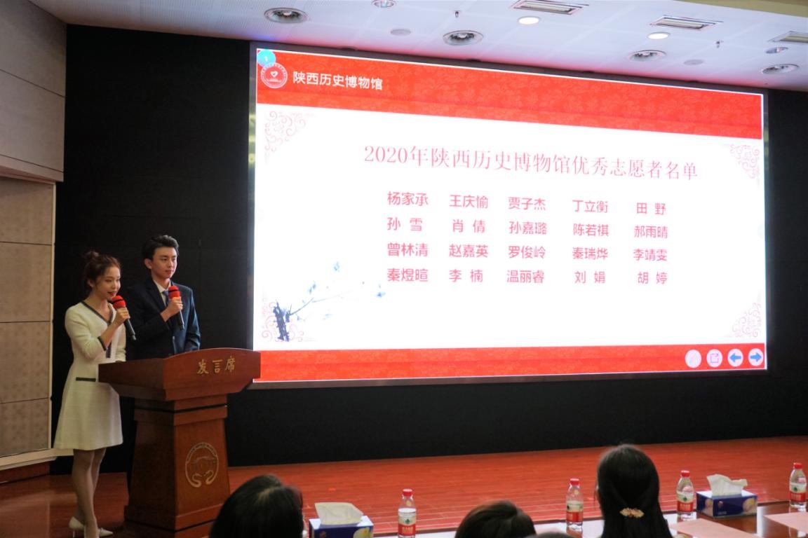 在本次签约注册仪式中,陕西历史博物馆还对2020年度“最具魅力志愿者”“最具责任心志愿者”“优秀志愿者”等近百名有突出贡献的志愿者进行了表彰。其中,我校赵睿彬同学荣获“最具魅力志愿者”称号,陈佳凌同学荣获“最具责任心志愿者”称号,王庆愉与赵嘉英同学荣获“优秀志愿者”称号并获得表彰。
